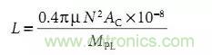 式中:N = 圈數, Ac = 截麵積, 分母 Mpl = 磁路長度。