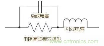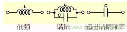 電感線圈在低頻、諧xie振zhen及ji工gong作zuo頻pin率lv高gao於yu諧xie振zhen頻pin率lv時shi會hui呈cheng現xian不bu同tong的de特te性xing,特te別bie是shi當dang工gong作zuo頻pin率lv超chao過guo諧xie振zhen頻pin率lv是shi電dian感gan不bu再zai是shi電dian感gan而er變bian成cheng的de電dian容rong。圖tu中zhong的de電dian容rong是shi線xian圈quan的de匝za間jian電dian容rong。