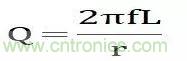 由上式可見品質因素是與頻率有關的量,在 r 不變的情況下,頻率越高則品質因素越高,然後通常我們不太使用Q這個量,而通常更關心的是Rdc,即電感的直流電阻,與電容類似,我們通常關心的是等效串聯電阻 ESR,而不是tgδ。電感線圈的直流電阻與電容的 ESR 一樣可通過電橋測得。