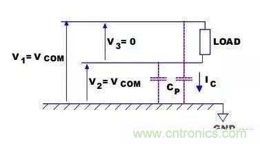 答案是否定的,共模噪聲電流對用戶的負載其實沒什麼影響,因為共模電流並不流過負載,如圖所示,由於共模電壓V3 = 0, 因此負載上並沒有共模電流流過,共模幹擾信號隻會以各種方式到 “地”。