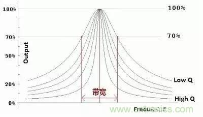 有些電路我們需要高 Q 值,比如振蕩器,Q 值越高越容易起振,比如收音機機調諧回路,Q 值越高選台時越不容易串台,這主要是 Q 值高時-3dB帶寬變狹的緣故。如下圖所示: