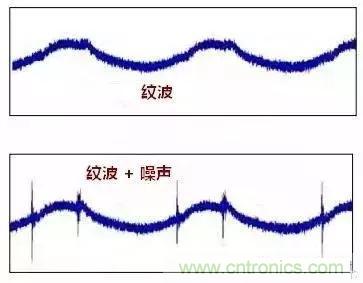 常有人描述問題時把紋波和噪聲混為一談。紋波是低頻的,噪聲是疊加在紋波的幹擾信號。如圖: