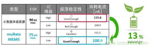 由於其低ESR的特性,可降低IC增益。因此,可抑製振蕩電路的消耗電流,實現整個設備的低功耗。