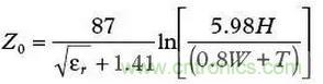 公式(6)可以用於計算一塊FR4板的特征阻抗。