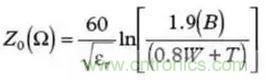 用於帶狀線的特征阻抗計算公式如公式(7)所示。