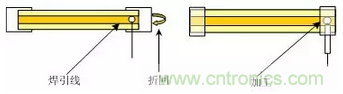 ①內銅箔一般加工方法:焊接引線→銅箔兩端平貼於醋酸布中央→折回醋酸布(醋酸布須完全覆蓋住焊點)→剪斷醋酸布(銅箔兩邊須留1mm以上),如圖8所示。