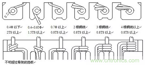 2)不用的引腳剪去時,應在未繞線前先剪掉,以防繞完線後再剪除時會刮傷線或剪錯腳,而且可以避免繞線時纏錯腳位。