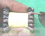 1)銅(tong)箔(bo)繞(rao)法(fa)除(chu)焊(han)點(dian)處(chu)必(bi)須(xu)壓(ya)平(ping)外(wai)銅(tong)箔(bo)之(zhi)起(qi)繞(rao)邊(bian)應(ying)避(bi)免(mian)壓(ya)在(zai)骨(gu)架(jia)轉(zhuan)角(jiao)處(chu),須(xu)自(zi)骨(gu)架(jia)的(de)中(zhong)央(yang)處(chu)起(qi)繞(rao),以(yi)防(fang)止(zhi)第(di)二(er)層(ceng)銅(tong)箔(bo)與(yu)第(di)一(yi)層(ceng)間(jian)因(yin)擠(ji)壓(ya)刺(ci)破(po)膠(jiao)布(bu)而(er)形(xing)成(cheng)短(duan)路(lu),如(ru)圖(tu)11所示。
