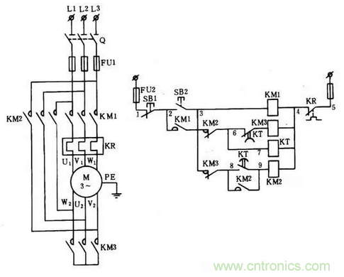 1、工作原理如下:按下啟動按鈕SB2,KM1、KM3、KT通電並自保,電動機接成Y型起動,2s後,KT動作,使KM3斷電,KM2通電吸合,電動機接成△型運行。按下停止按扭SB1,電動機停止運行。