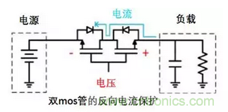 如下圖所示,這是使用2個MOS管串聯的方法。在MOS管關閉時,可以阻止從兩個方向上來的電流。 MOS管的壓降低於二極管解決方案,但這種方法的缺點是需要占用更多的電路板空間。