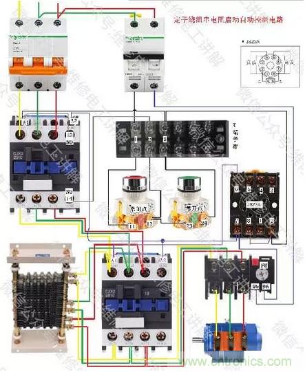 時間繼電器控製電動機轉子繞組串電阻啟動電路及實物圖分享