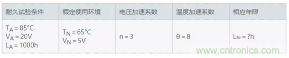 在此公式的基礎上,通過在更為嚴苛的條件(更高溫、更高電壓)下進行加速試驗,可推算出產品在實際使用環境下的使用壽命。