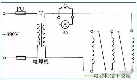 通(tong)入(ru)電(dian)動(dong)機(ji)繞(rao)組(zu)線(xian)圈(quan)的(de)電(dian)流(liu)可(ke)由(you)電(dian)焊(han)機(ji)來(lai)調(tiao)節(jie),但(dan)在(zai)烘(hong)幹(gan)時(shi)應(ying)注(zhu)意(yi)通(tong)入(ru)電(dian)動(dong)機(ji)的(de)電(dian)流(liu)不(bu)能(neng)超(chao)過(guo)電(dian)動(dong)機(ji)本(ben)身(shen)額(e)定(ding)電(dian)流(liu)太(tai)多(duo),並(bing)且(qie)注(zhu)意(yi)觀(guan)察(cha)電(dian)動(dong)機(ji)和(he)電(dian)焊(han)機(ji)溫(wen)度(du)都(dou)不(bu)能(neng)升(sheng)得(de)過(guo)高(gao)。線(xian)路(lu)參(can)見(jian)圖(tu)31。