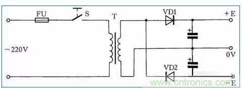 在實際工作中,往往用電設備為雙電源,並且對稱。在手頭隻有單電源的情況下,按圖37所示連接,即可使其變為雙對稱電源使用。