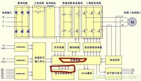 變頻器的控製電路包括開關電源、驅動電路、檢測電路(電流、電壓、溫度、故障、檢測)、操作控製電路和其他基本電路。