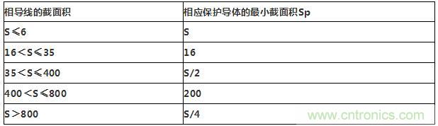 保護導體(PE)的截麵積不應小於下表給出值