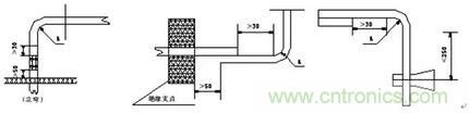 (6)與電器元件搭接的母排,應避免銳角彎折,製作彎曲角度一般不小於90度,見下圖。