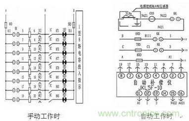 手動工作時,轉換開關KK從kk21-22開始每轉過一個位置多接通一個LED燈,表示1—8個電容器依次進入使用狀態;自動接通時,轉換開關KK如在kk1-2位置停下,那麼停下的位置,其餘均接通。(如下圖)