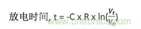 除了部份生產商直接提供參數值外,“漏電流值”可通過向超級電容器施加電壓直至特定時間後測量電阻器兩端的電壓,再根據以下簡單方程計算便能得出。