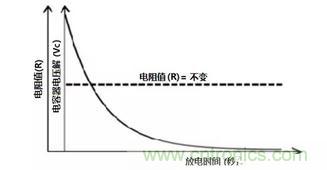 圖5:電阻值不變時放電時間與電容器電壓降關係圖