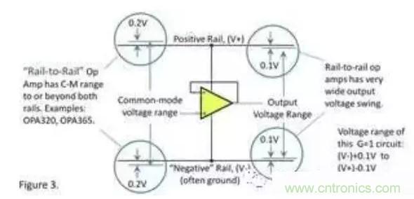 輸出電壓範圍“包含(幾乎達到)”供電電壓,即所謂軌至軌輸出。