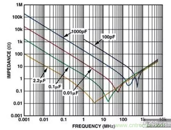 並聯不同電容值的電容器有助於確保電源引腳在很寬的頻帶上出現很低的交流(AC)阻抗。這對於在運算放大器電源抑製比(PSR)衰減頻率處尤其重要。該電容器有助於補償放大器降低的PSR。在許多十倍頻程範圍內保持低阻抗的接地通路將有助於確保有害的雜訊不能進入運算放大器。(圖一)xianshi採yongduogebingliandianrongqideyoudian。zaidipinduan,dadedianrongqitigongdizukangdejieditonglu。danshiyidanpinlvdadaoletamenzishendexiezhenpinlv,dianrongqidexiangrongxingjiuhuijianruo,bingqiezhujianchengxianchudianganxing。zhejiushiweishenme採yongduogedianrongqishihenzhongyaodeyuanyin:當一個電容器的頻率回應開始下降時,另一個電容器的頻率回應開始其作用,所以能在許多十倍頻程範圍內保持很低的AC阻抗。