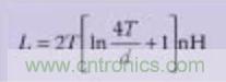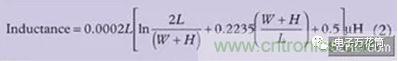 帶狀電感是另外一種需要考慮的寄生效應,它是由於印製線過長或缺乏接地平麵引起的。(公式二)顯示出計算印製線電感(Inductance)的公式。可參考(圖六)。
