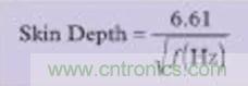 在高頻段,必須考慮一種稱為趨膚效應的現象。趨膚效應會引起電流流向導線的外表麵,結果會使得導線的橫截麵變窄,因此使直流(DC)電阻增大。雖然趨膚效應超出了本文討論的範圍,這裏還是給出銅線中趨膚深度(Skin Depth)的一個很好的近似公式(以cm為單位):