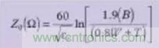 用於帶狀線的特征阻抗計算公式如(公式七)所示: