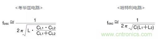 上述電路采用最基本的晶體管作為放大器。考畢茲和哈特萊電路的振蕩頻率幾乎與由L、CL1、L2組成的電路或由L1、L2組成的電路的諧振頻率相同。此類電路的振蕩頻率分別由以下公式表達。
