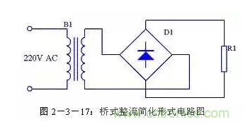 橋式整流電路每個整流二極管上流過的電流是負載電流的一半,與全波整流相同。通常情況下橋式整流電路都簡化成圖2-3-17的形式。