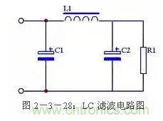 與RC濾波電路相對的還有一種LC濾波電路,這種濾波電路綜合了電容濾波電路紋波小和電感濾波電路帶負載能力強的優點。其電路圖見圖2-3-28。