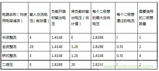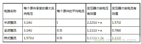 (1)常用整流電路性能對照