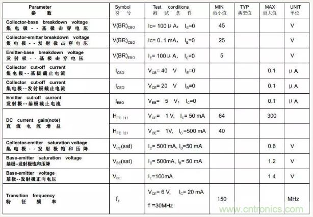 對於9013、9012而言,飽和時Vce小於0.6V,Vbe小於1.2V。下麵是9013的特性表: