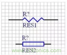 電阻的種類繁多,通常分為固定電阻、可變電阻和特種電阻3大類。固定電阻可按電阻的材料、結構形狀及用途等進行多種分類。電阻的種類雖多,但常用的電阻類型主要為RT型碳膜電阻、RJ型金屬膜電阻、RX型線繞電阻和片狀電阻等。固定電阻的原理圖符號的常用名稱是“RES1”和“RES2”,如圖F1-5(a)所示。