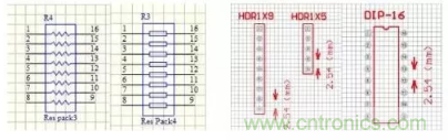 (b)電組排的原理圖符號、元器件封裝和元器件實物 圖F1-7 各種電阻排 由you於yu電dian阻zu的de工gong作zuo環huan境jing多duo種zhong多duo樣yang,並bing且qie所suo能neng實shi現xian的de功gong能neng也ye比bi較jiao多duo,因yin此ci它ta的de電dian阻zu的de種zhong類lei和he型xing號hao就jiu比bi較jiao多duo,設she計ji者zhe在zai具ju體ti選xuan用yong的de時shi候hou就jiu需xu要yao按an實shi際ji情qing況kuang進jin行xing選xuan型xing。
