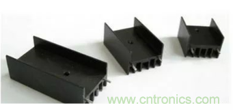在zai實shi際ji使shi用yong過guo程cheng中zhong,用yong戶hu常chang常chang在zai穩wen壓ya源yuan上shang附fu加jia散san熱re片pian,以yi避bi免mian穩wen壓ya源yuan長chang時shi間jian工gong作zuo在zai大da負fu載zai下xia,散san熱re條tiao件jian不bu足zu,從cong而er造zao成cheng過guo高gao的de溫wen升sheng而er損sun壞huai元yuan器qi件jian和he電dian路lu板ban,圖tuF1-17所示為常用的散熱片。