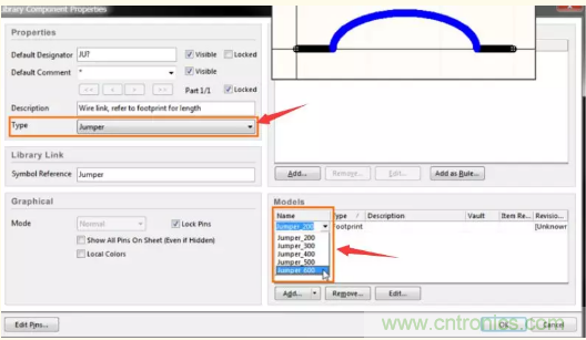 一旦創建了符號,注意:A.設置默認的指示符,在本例中為ju? B.將組件類型設置為跳線 C.將各種跳線腳印添加到模型列表中,如上圖所示 D.dingyisuoxudeqitazujianshuxing,lirumiaoshuherenhebixudezujiancanshu。yidanshejihaoletiaoxianqi,jiukeyibatamenzhongdeyixiefangdaoyuanlitushang。zaizhegejieduan,nikenengbuzhidaozijixuyaoduoshaogetiaoxian,danewaidekeyihenrongyidishanchu。tamenshizaiyuanlitushang,keyiquebaotamenjinruBOOM。如下圖: