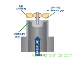Opening Gap傳感器工作方式則不同;當施加壓力時,隔膜隨電極移動,致使電容變化,從而改變電輸出。