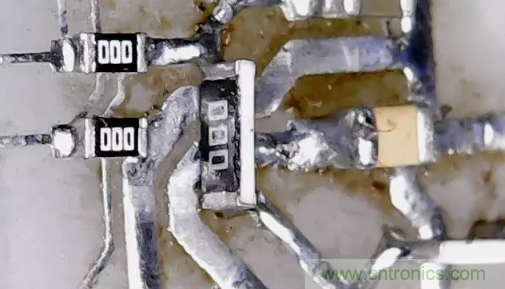 這說明電阻的溫度也急劇增加,導致功耗也大幅度增加。0603電阻在電流增加到11.5A時燒毀,0805電阻在電流增加到12A時燒斷,1206的電阻在12A時沒有燒毀。