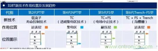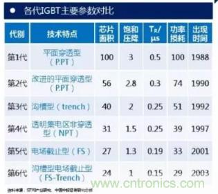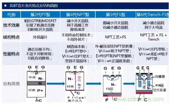 1985年前後美國GE成功試製工業樣品(可惜後來放棄)。自此以後, IGBT主要經曆了6代技術及工藝改進。