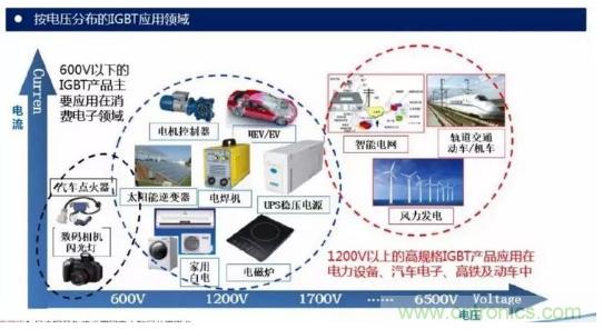 作為新型功率半導體器件的主流器件,IGBT已廣泛應用於工業、 4C(通信、計算機、消費電子、汽車電子)、航空航天、國防軍工等傳統產業領域,以及軌道交通、新能源、智能電網、新能源汽車等戰略性新興產業領域。