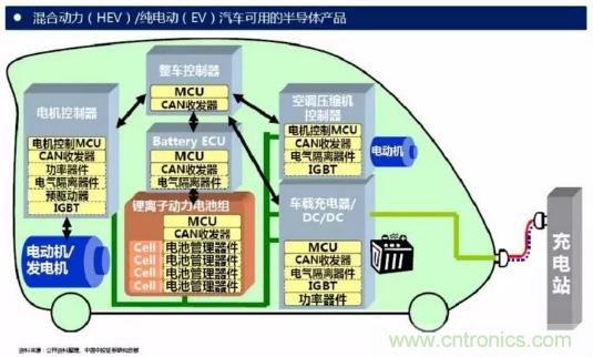 IGBT模塊在電動汽車中發揮著至關重要的作用,是電動汽車及充電樁等設備的核心技術部件。IGBT模塊占電動汽車成本將近10%,占充電樁成本約20%。IGBT主要應用於電動汽車領域中以下幾個方麵: