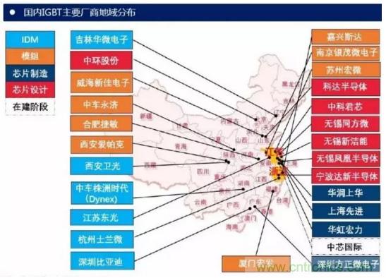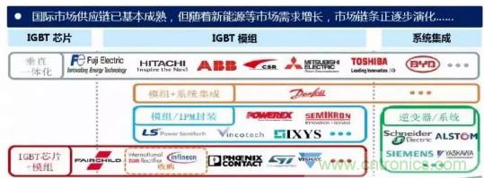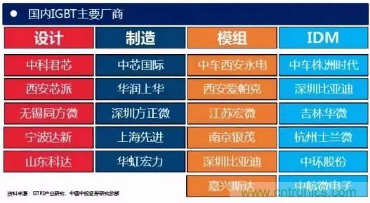 從公司來看,國外研發IGBT器件的公司主要有英飛淩、 ABB、三菱、西門康、東芝、富士等。中國功率半導體市場占世界市場的50%以上,但在中高端MOSFET及IGBT主流器件市場上,90%主要依賴進口,基本被國外歐美、日本企業壟斷。
