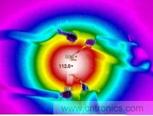 將10cmX10cm的二層PCB板的覆銅改為1OZ,重複上麵實驗,測量的溫度如下圖所示。