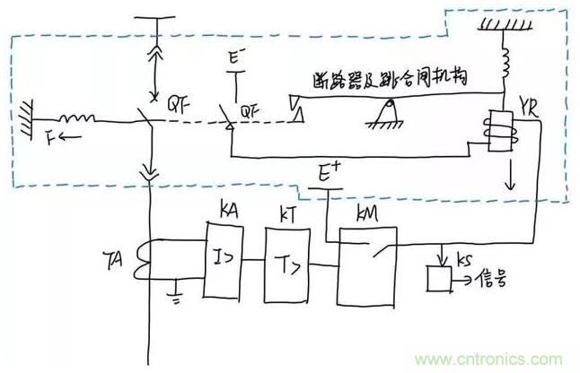 然後,我們還需要讓保護能夠控製開關跳閘,這就需要將保護裝置出口和開關跳閘線圈連接,這部分叫做 “控製回路”。