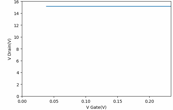 對於IRF450的擊穿電壓測試曲線,當電壓超過600V的時候,漏極電流激增。這與該期間的數據手冊上標稱的耐壓基本相當。