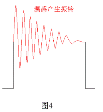 由於變壓器的初級有漏感,當電源開關管V1由(you)飽(bao)和(he)導(dao)通(tong)到(dao)截(jie)止(zhi)關(guan)斷(duan)時(shi)會(hui)產(chan)生(sheng)反(fan)電(dian)動(dong)勢(shi),反(fan)電(dian)動(dong)勢(shi)又(you)會(hui)對(dui)變(bian)壓(ya)器(qi)初(chu)級(ji)線(xian)圈(quan)的(de)分(fen)布(bu)電(dian)容(rong)進(jin)行(xing)充(chong)放(fang)電(dian),從(cong)而(er)產(chan)生(sheng)阻(zu)尼(ni)振(zhen)蕩(dang),即(ji)產(chan)生(sheng)振(zhen)鈴(ling),如(ru)圖(tu)4所suo示shi。變bian壓ya器qi初chu級ji漏lou感gan產chan生sheng反fan電dian動dong勢shi的de電dian壓ya幅fu度du一yi般ban都dou很hen高gao,其qi能neng量liang也ye很hen大da,如ru不bu采cai取qu保bao護hu措cuo施shi,反fan電dian動dong勢shi一yi般ban都dou會hui把ba電dian源yuan開kai關guan管guan擊ji穿chuan,同tong時shi反fan電dian動dong勢shi產chan生sheng的de阻zu尼ni振zhen蕩dang還hai會hui產chan生sheng很hen強qiang的de電dian磁ci輻fu射she,不bu但dan對dui機ji器qi本ben身shen造zao成cheng嚴yan重zhong幹gan擾rao,對dui機ji器qi周zhou邊bian環huan境jing也ye會hui產chan生sheng嚴yan重zhong的de電dian磁ci幹gan擾rao。