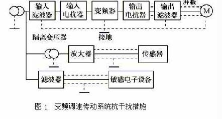 變頻器調速技術是集自動控製、微電子、電力電子、通信等技術於一體的高科技技術。它以很好的調速、節能性能,在各行各業中獲得了廣泛的應用。由於其 采用軟啟動,可以減少設備和電機的機械衝擊,延長設備和電機的使用壽命。隨著科學技術的高速發展,變頻器以其具有節電、節能、可靠、高效的特性應用到了工業控製的各個領域中,如變頻調速在供水、空調設備、過程控製、電梯、機床等方麵的應用,保證了調節精度,減輕了工人的勞動強度,提高了經濟效益,但隨之也 帶dai來lai了le一yi些xie幹gan擾rao問wen題ti。現xian場chang的de供gong電dian和he用yong電dian設she備bei會hui對dui變bian頻pin器qi產chan生sheng影ying響xiang,變bian頻pin器qi運yun行xing時shi產chan生sheng的de高gao次ci諧xie波bo也ye會hui幹gan擾rao周zhou圍wei設she備bei的de運yun行xing。變bian頻pin器qi產chan生sheng的de幹gan擾rao主zhu要yao有you三san種zhong:對電子設備的幹擾、對通信設備的幹擾及對無線電等產生的幹擾。對計算機和自動控製裝置等電子設備產生的幹擾主要是感應幹擾;對通信設備和無線電等產生的幹擾為放 射幹擾。如果變頻器的幹擾問題解決不好,不但係統無法可靠運行,還會影響其他電子、dianqishebeidezhengchanggongzuo。yinciyoubiyaoduibianpinqiyingyongxitongzhongdeganraowentijinxingtantao,yicujinqijinyibudetuiguangyingyong。xiamianzhuyaotaolunbianpinqideganraojiqiyizhifangfa。