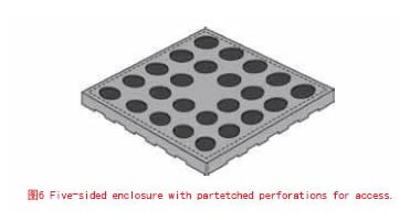 youdeshejizhegengxihuanyongbiaomiananzhuangshengchanxiandetiezhuangshebeijianggaiziheweilanheweizhengti。zhiyouzaizhongxinjiagongqiangtineiyuanjianshicaidakaigaizi。xuanzezhezhongshejiyiweizhegaizishangbixuliuyouzhenliexiaokong,yibianreliangnengjinruqiangtijiangneibudedianziyuanjianhanjiezaiPCB上,如圖4所示。不幸的是,這些小孔會將腔體的屏蔽性能降低20dB左右。